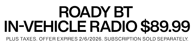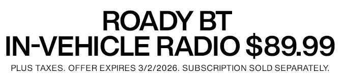 Elevate your listening experience with the SiriusXM® Roady BT. This advanced in-vehicle satellite radio includes Bluetooth® audio connectivity in equipped vehicles and allows you to enjoy expertly curated ad-free music, news, sports, talk, and comedy while driving anywhere across the country. Subscription sold separately. Programming varies by subscription plan.